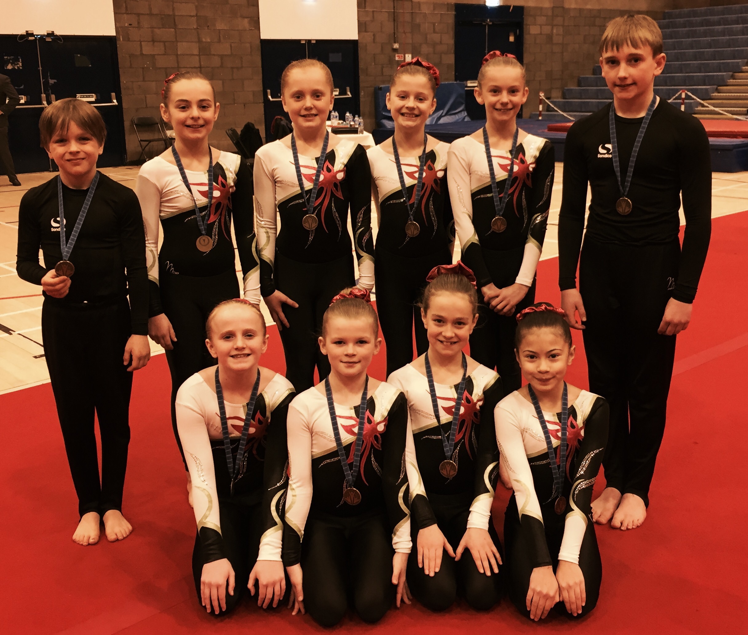 We would like to congratulate all the gymnasts who too part in the northern teamgym qualifiers in Edinburgh today. The teams finished off the weekend of competitions in style. The Primary green team achieved SGA’s third Gold of the weekend and gained qualification for the British Gymnastics Championship Series in Liverpool in July. The girls primary micro team were awarded silver and the purple team placed 5th overall and 2nd on Trampette. This was the first competition away from the gym for many of the gymnasts ranging from age 8 to 11 so the results were an amazing achievement.