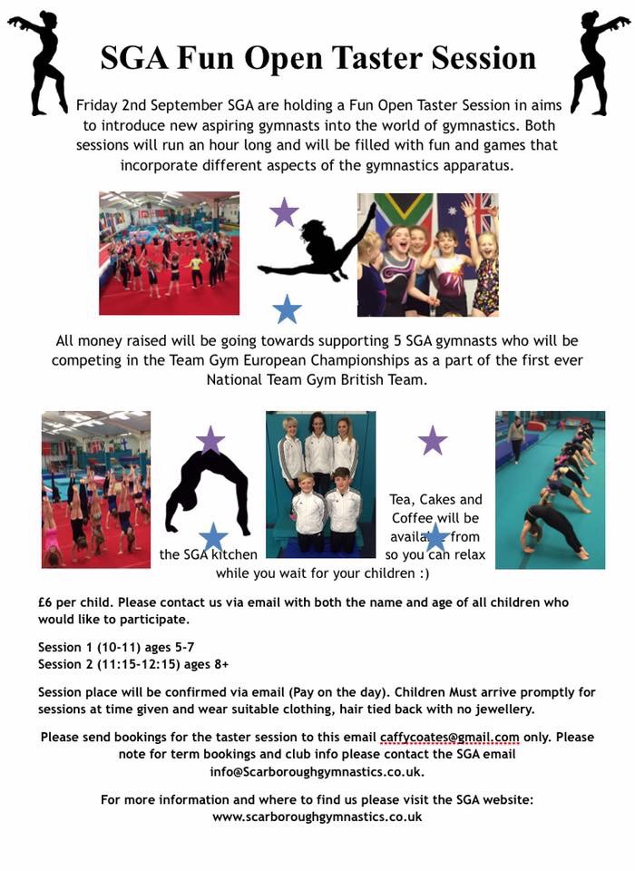 August 31, 2016 by evywalker Try Gymnastics at SGA Last few spaces going on the SGA Fun Taster Session on Friday 2nd Sept. For further details email caffycoates@gmail.com Share this: Click to share on X (Opens in new window) X Click to share on Facebook (Opens in new window) Facebook Click to share on Tumblr (Opens in new window) Tumblr Like Loading...