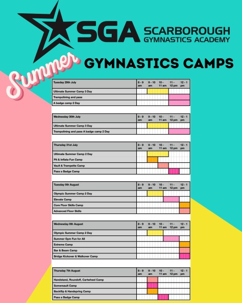 Summer Holiday Gymnastics Camps at SGA – Open to All – Members & Non Members