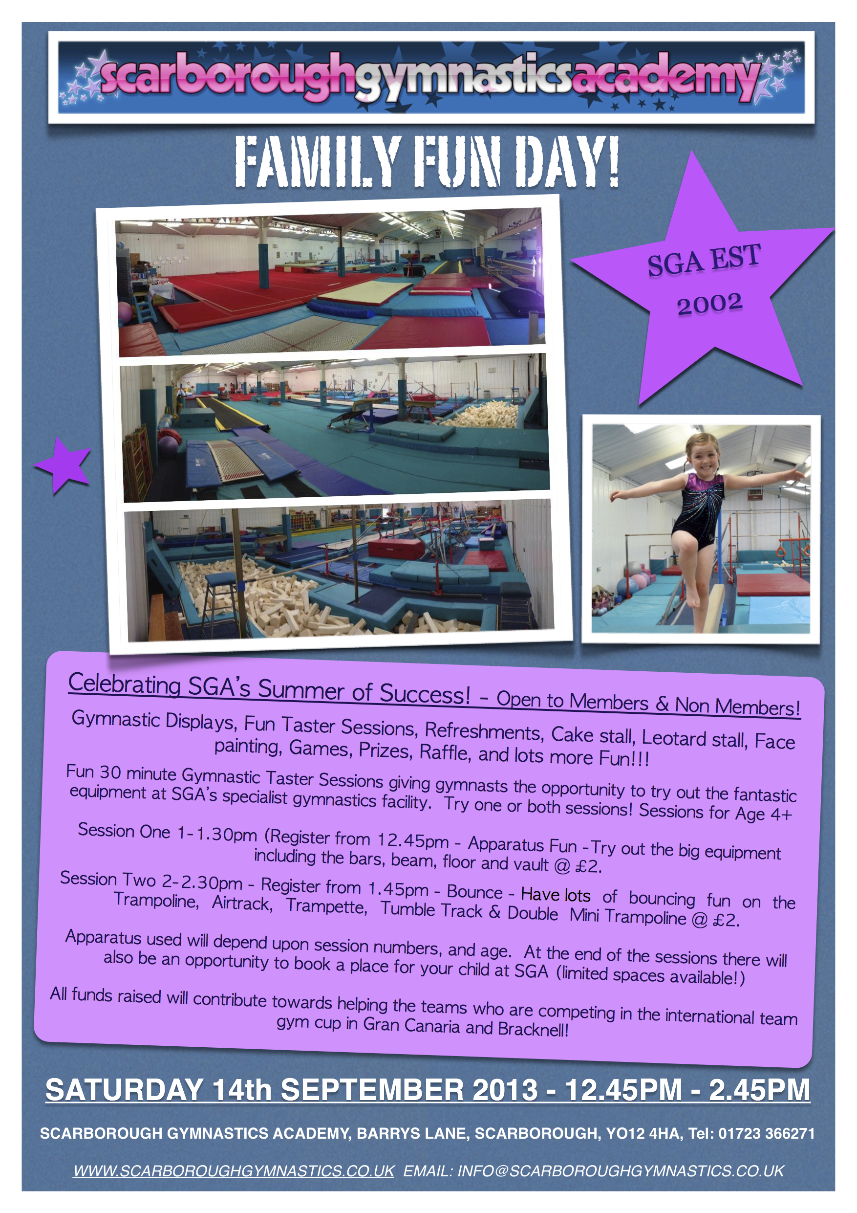 Thank you to the gymnasts who put on a fantastic display and to all the parent / family and coach volunteers who helped run the sessions and man the stalls! Also a massive thank you to everyone who donated cakes and prizes! The raffle will be drawn next week and numbers will be published on the website and Facebook!